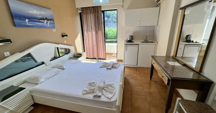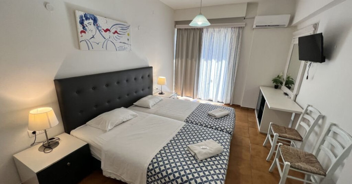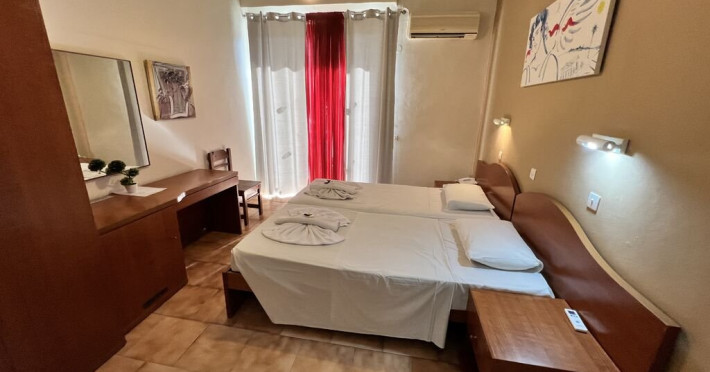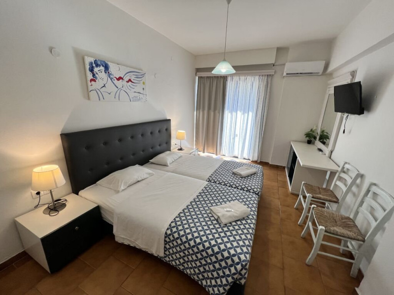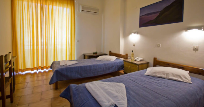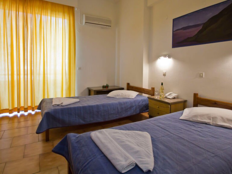 Hotelul dispune de 41 de unitati de cazare, impartite in camere duble si studiouri, fiecare avand aproximativ 20 mp. Camerele duble sunt echipate cu doua paturi twin si pot gazdui maxim 2 persoane, iar studiourile sunt prevazute cu trei paturi single si pot acomoda pana la 3 persoane. Studiourile includ si o chicineta cu mini-frigider, plite electrice, vesela de baza, masa si scaune pentru luat masa.