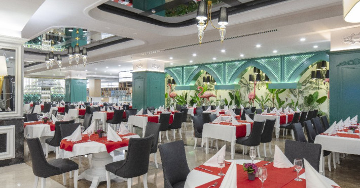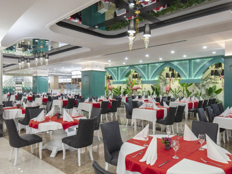 Facilitati hotel: Hotelul ofera oaspetilor sai urmatoarele facilitati: restaurant principal, 6 restaurante a la carte, patiserie, baruri, discoteca, piscina principala, piscina pentru copii, aquapark, piscina interioara, sauna, baie turceasca, centru SPA, centru fitness, darts, tenis de masa, teren de tenis, programe de animatie, muzica live, seara turceasca, cinema, internet wi-fi, mini club 4-12 ani, mini disco, mini cinema. Servicii cu plata: restaurantele a la carte, bauturi premium, bauturi imbuteliate, vitamin bar, fresh-uri din fructe, internet cafe, sala de jocuri, masaj, spa si welness, servicii medicale, nocturna pentru terenul de tenis, sporturi acvatice, room service.