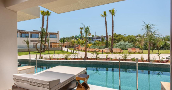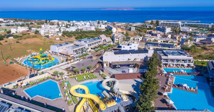 Gouves Waterpark Holiday Resort se află in Gouves, la doar 300 de metri de plaja cu nisip. Proprietatea oferă 3 piscine cu apă dulce, centru de infrumusețare și camere cu aer condiționat și balcon.