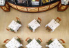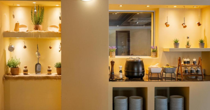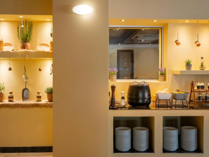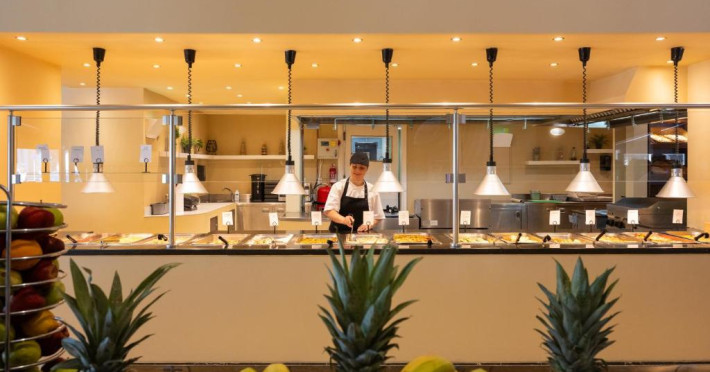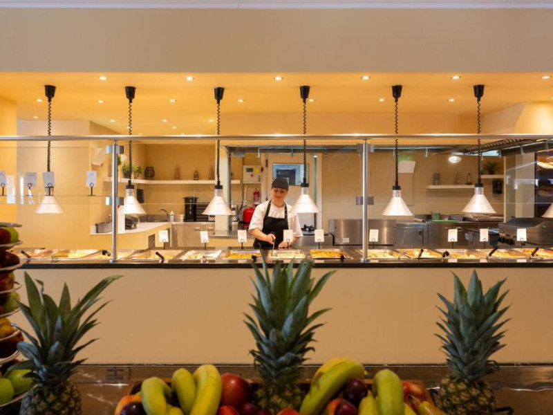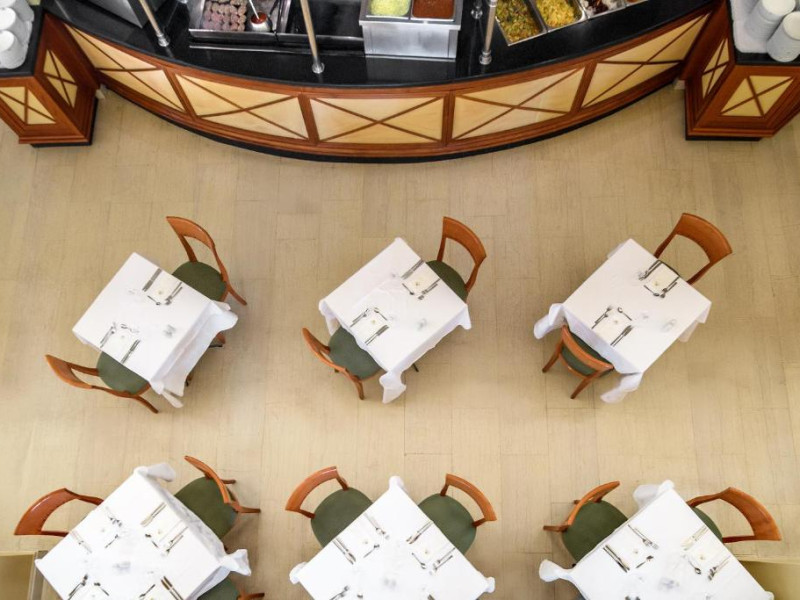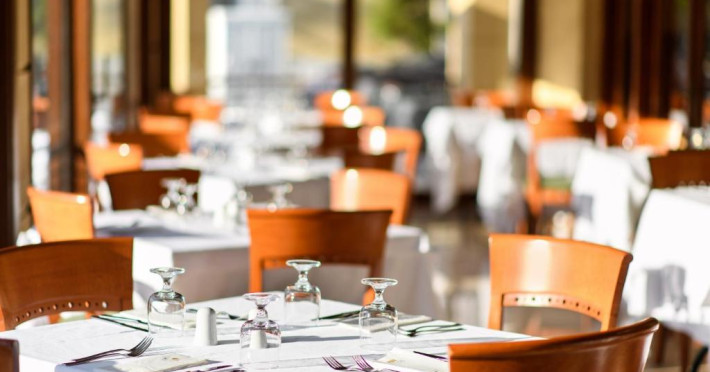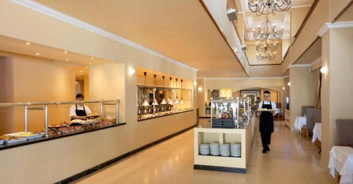 Restaurantul principal servește micul dejun tip bufet american, pranz tip bufet, cu bucătărie deschisă, precum și cină tip bufet bogat, cu bucătărie deschisă, cu grătar și pizza pregătită la cuptor cu lemne. Intre mese, la bar sunt disponibile gustări ușoare și sandvișuri.