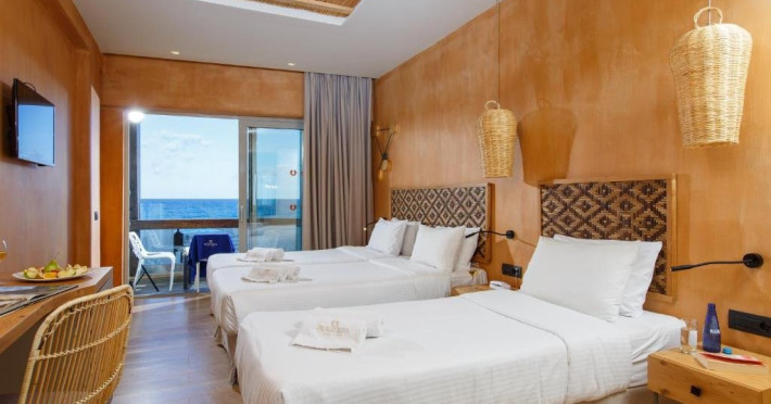 Descriere: Hotelul Palmera Beach de 4 stele ofera o vacanta placuta intr-o atmosfera calda si prietenoasa celor ce vor sa se relaxeze si sa se bucure de ospitalitatea cretana. Un hotel cu multe aprecieri pozitive si o localizare de invidiat peste drum de mare.