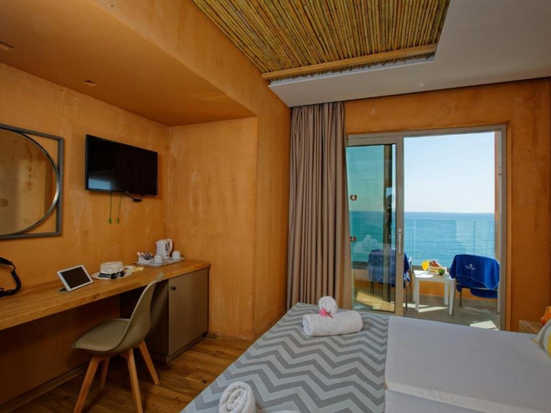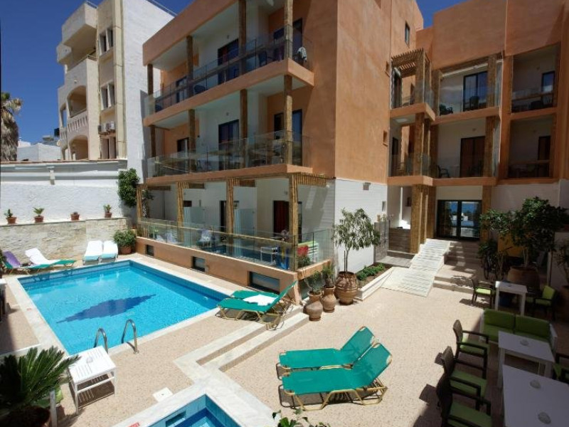 Localizare: Hotelul este foarte bine pozitionat pe plaja din centrul statiunii Hersonissos, la 25 km de Heraklion si la 24 km de aeroportul Heraklion si de Knossos. Plaja este mixta (nisip si pietricele) si este amenajata cu sezlonguri si umbrele (contra cost).