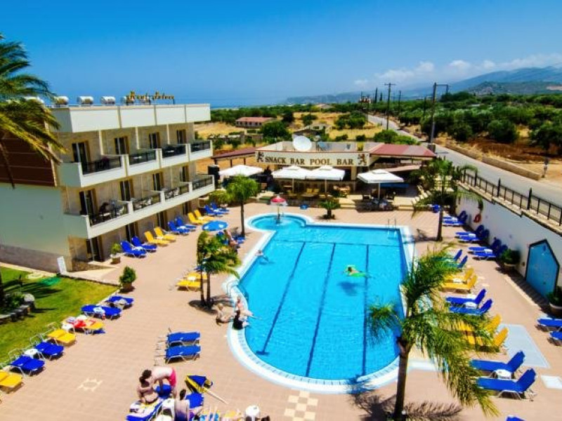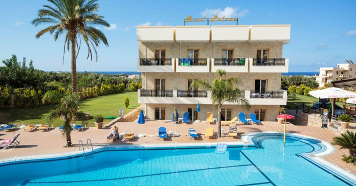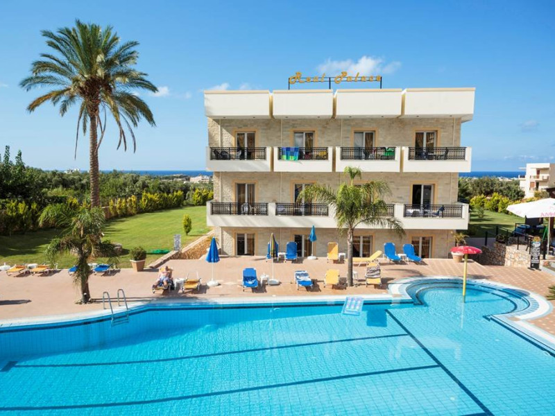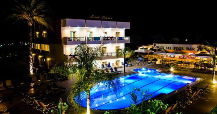 Descriere: REAL PALACE este un aparthotel nou care opereaza self-catering, cu posibilitatea de a servi clientilor mic dejun si cina (meniu fix). Localizare: REAL PALACE este localizat la iesirea din Malia, la 8 km de statiunea Hersonissos, la 28 km de Agios Nikolaos, la 35 km de Elounda si la 32 km de aeroportul din Heraklion. Plaja: REAL PALACE este situat la la 2 km de plaja cea mai apropiata, unde sezlongurile si umbrelele sunt contra cost. Exista facilitati pentru practicarea sporturilor acvatice. Dotari camere: REAL PALACE detine 39 de studiouri si apartamente, toate dotate cu aer conditionat (cu plata), Wi-Fi gratuit, seif (cu plata), TV satelit, chicineta complet utilata, masa cu scaune, baie cu dus, uscator de par, balcon/terasa.Studio standard: 25 mp, studio superior: 30 mp, apartament 1 dormitor superior: 35 mp. Facilitati hotel: REAL PALACE ofera clientilor sai receptie (09:00-00:00), wi-fi gratuit peste tot, camera pentru bagaje, restaurant principal cu terasa, restaurant a la carte, bar cu terasa, snack bar la piscina, gratar, piscina (09:00-20:00), sezlonguri si umbrele gratuite, terasa, parcare, gradina, schimb valutar, inchirieri de masini, prim ajutor, doctor (la cerere, cu plata), pat pentru infanti (la cerere, gratuit), biliard (cu plata), servicii de infrumusetare (cu programare, contra cost), camera pentru jocuri. Se organizeaza seri barbeque si seri folclorice (cu plata). Clasificare oficiala: 1 stea (recomandat 3*) Pagina web: http://www.realpalace.eu/ Nota informativa: Pentru anumite facilitati din hotel sau din camera, hotelierul poate solicita taxe suplimentare. In momentul sosirii la hotel solicitati receptionerului sa va informeze cu exactitate asupra lor.