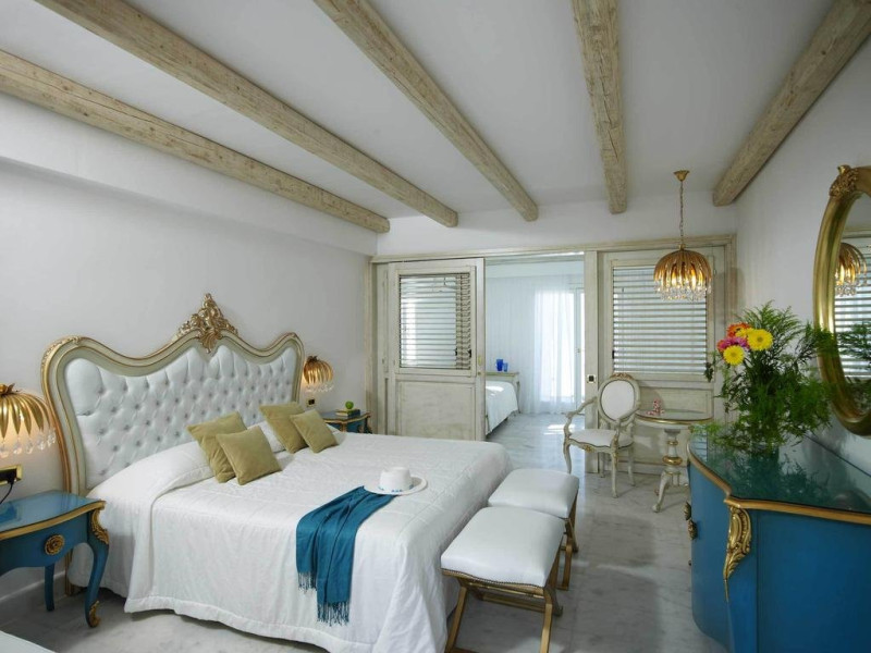 Dotari camere: 180 camere in bungalouri, 80 camere in cladirea principala, 80 camere family si 2 apartamente prezidentiale cu piscina privata, toate fiind dotate cu aer conditionat, telefon, mini bar, televizor LCD, balcon/terasa, seif, acces internet, baie cu uscator de par, telefon, halat si papuci.