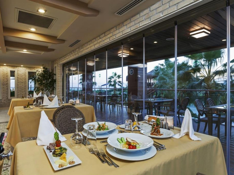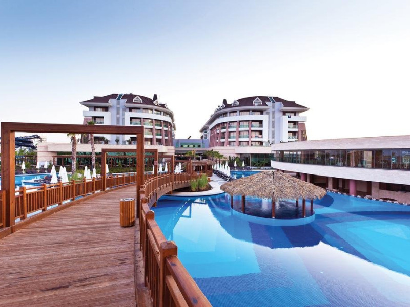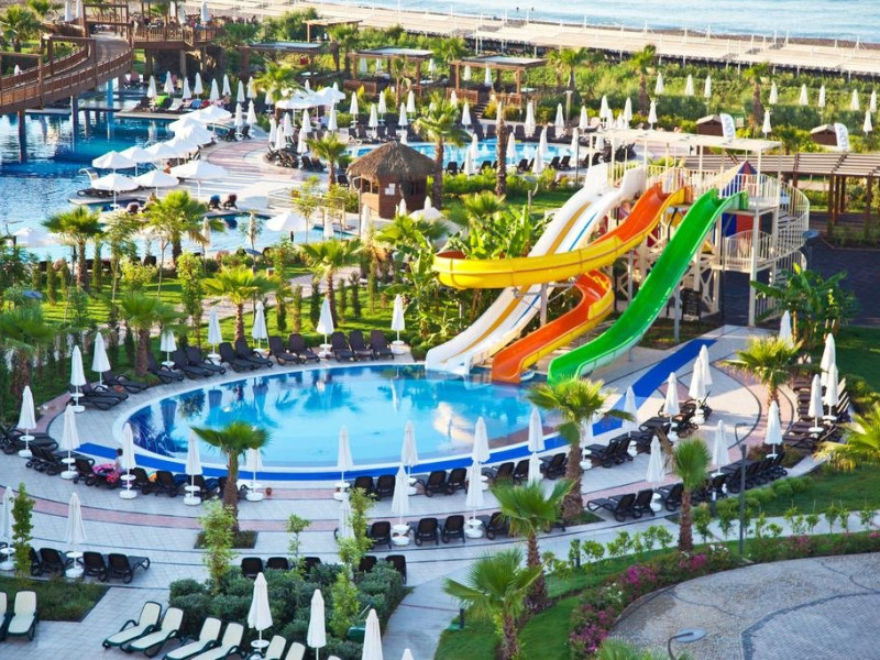 Facilitati hotel: Hotelul ofera oaspetilor sai urmatoarele facilitati: restaurant principal, 2 restaurante a la carte, patiserie, inghetata, 5 baruri, piscina exterioara principala, piscine cu tobogane: 6 pentru adulti si 4 pentru copii, piscina pentru bebelusi, piscina interioara, baie turceasca, sauna, centru fitness, gimnastica, programe de animatie, muzica live, volei pe plaja, basket, teren de tenis, mini fotbal, tenis de masa, boccia, darts, internet wi-fi, mini club 5-12 ani, club pentru adolescenti 13-17 ani, loc de joaca, bufet pentru copii in restaurant in timpul cinei, piscina pentru copii si bebelusi, mini disco, luna park.