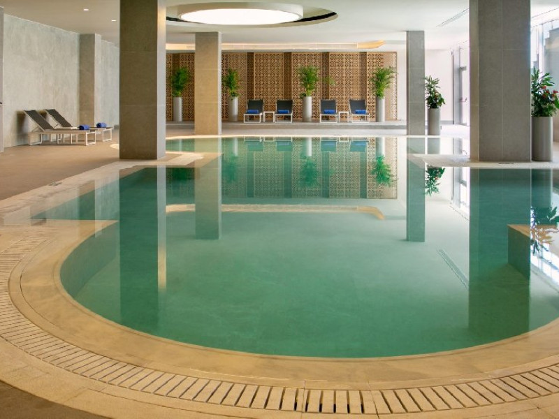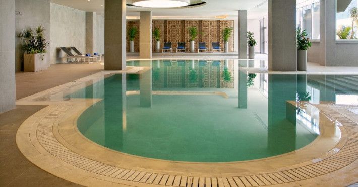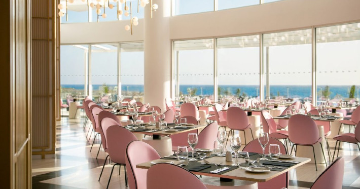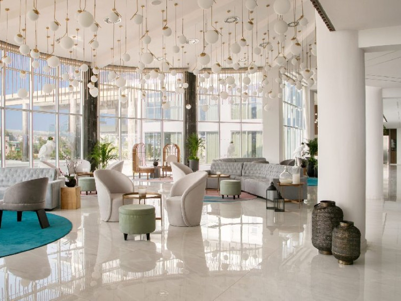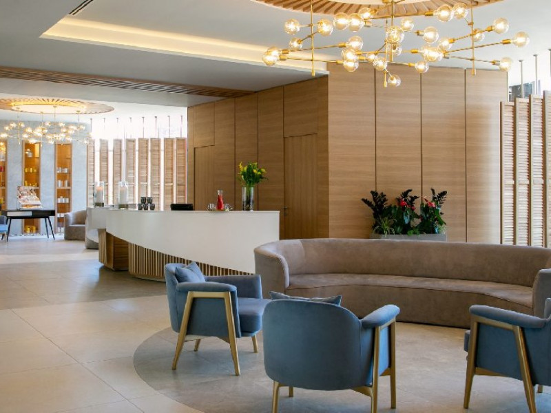 Facilitati hotel: Hotelul Nissi Blu beneficiaza de urmatoarele facilitati: restaurante, baruri, piscina exterioara, piscina interioara, sezlonguri si umbrele, centru spa, fitness club.