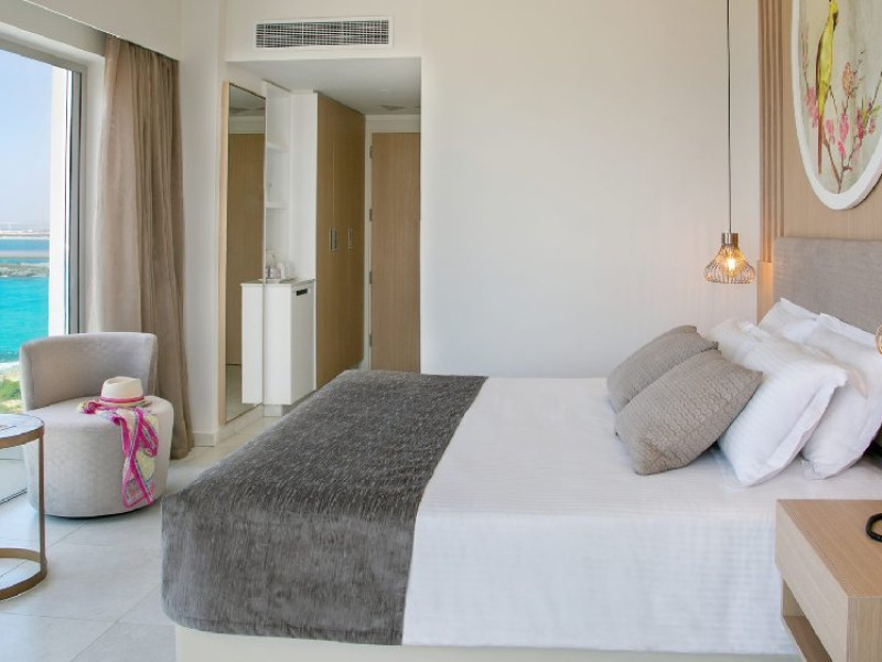 Dotari camere: Camerele hotelului Nissi Blu au urmatoarele dotari: aer conditionat, mini bar sau mini frigider, TV, Wi-fi, seif, facilitati pentru preparare ceai sau cafea, baie privata, uscator de par, balcon.