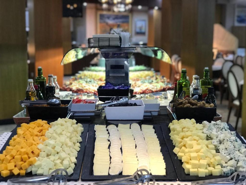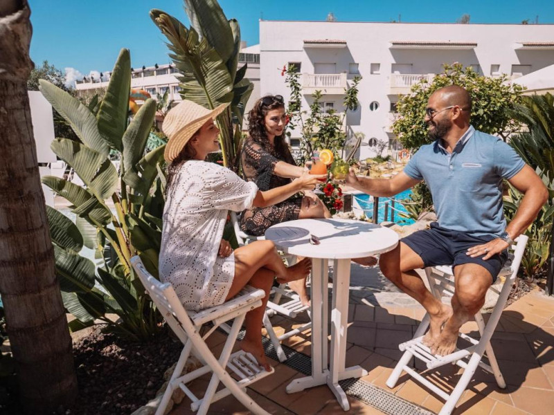 Restaurantul in stil bufet serveste micul dejun, pranzul si cina. Acesta oferă un amestec de mancăruri spaniole si internationale. Barul de langă piscină organizează spectacole săptămanale, inclusiv dansuri flamenco.