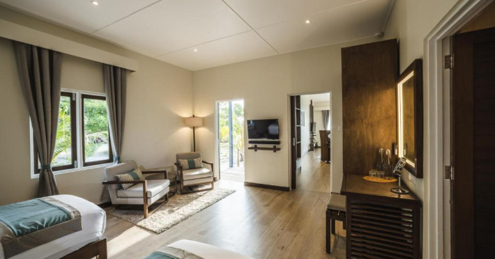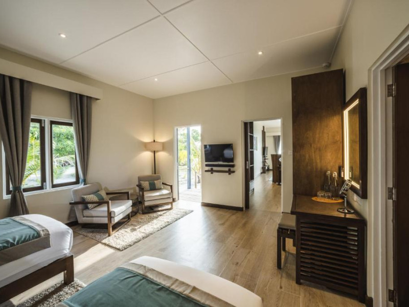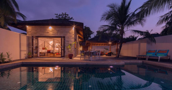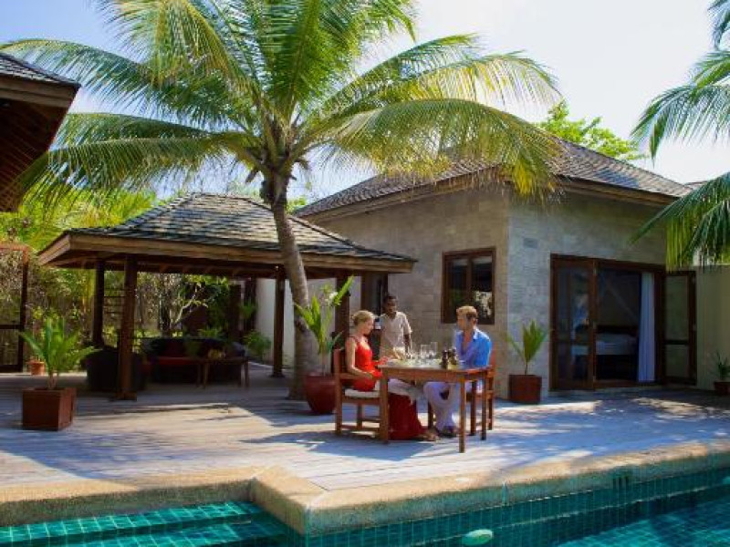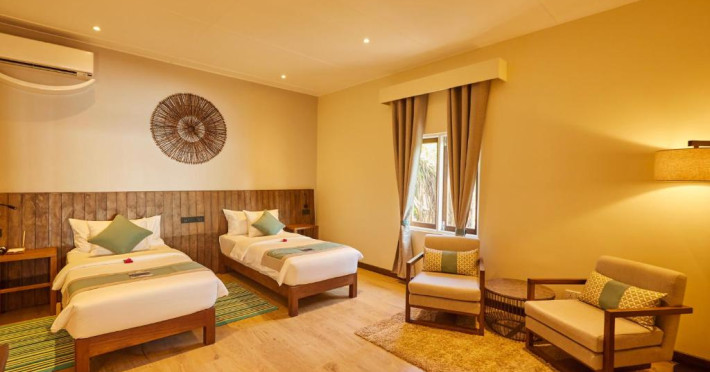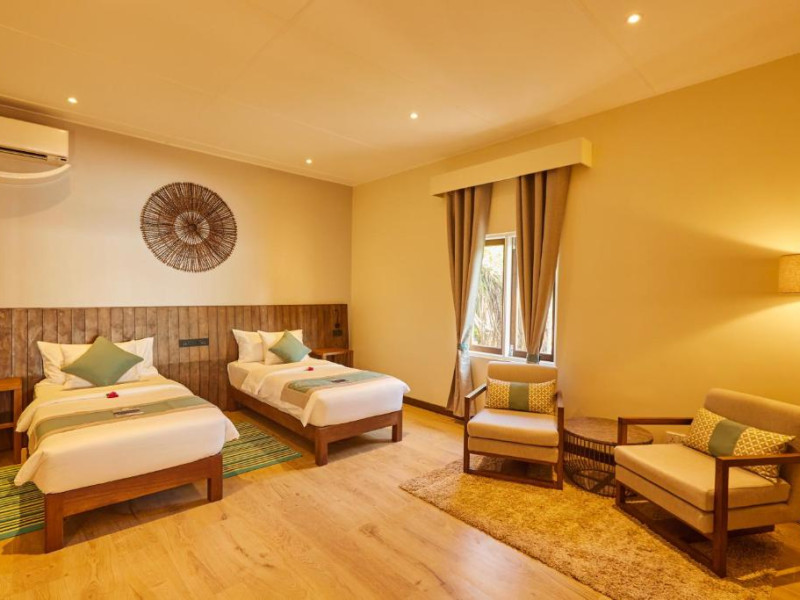 Facilitățile includ multiple restaurante cu bucătărie internațională și locală, spa cu tratamente ayurvedice, piscină in aer liber, centru de sporturi nautice și teren de tenis. Camerele variază de la vile pe plajă la bungalouri pe apă cu acces direct la lagună.
