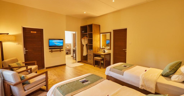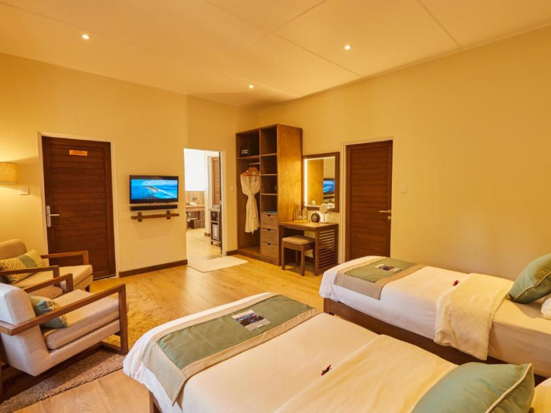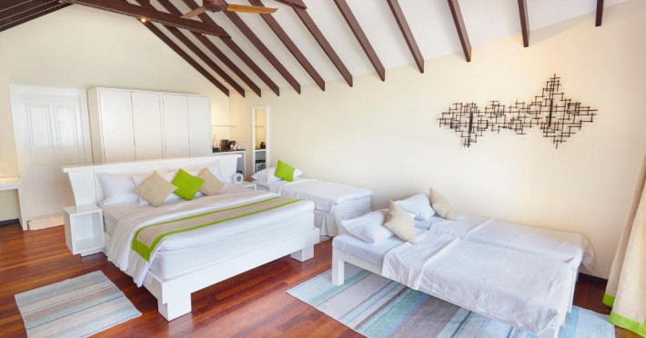 Atmosfera este relaxată și tropicală, ideală pentru cupluri și familii care caută o vacanță in paradis, cu posibilitatea de a explora viața marină bogată a Maldivelor.