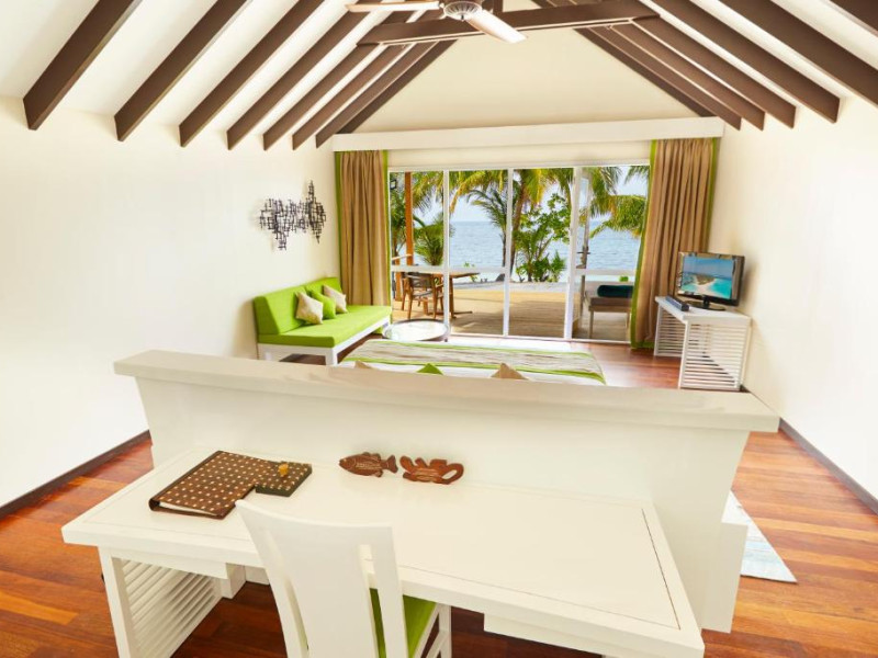Resortul dispune de plajă privată cu nisip alb fin care inconjoară intreaga insulă, oferind acces direct la ape cristaline perfecte pentru snorkeling și scufundări. Centrul de scufundări organizează excursii la recifurile de corali din apropiere.