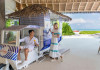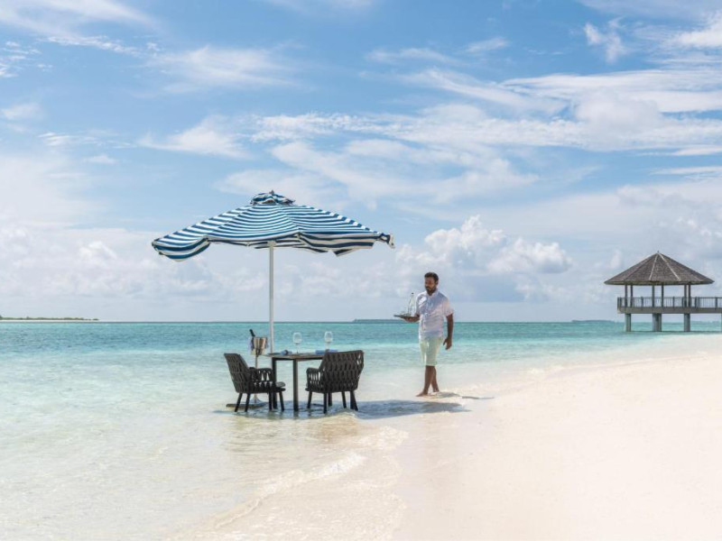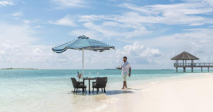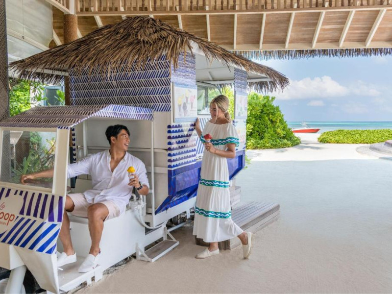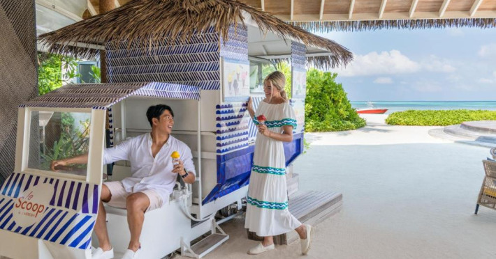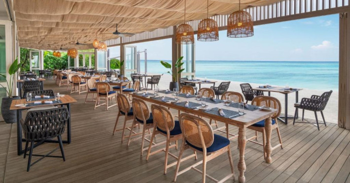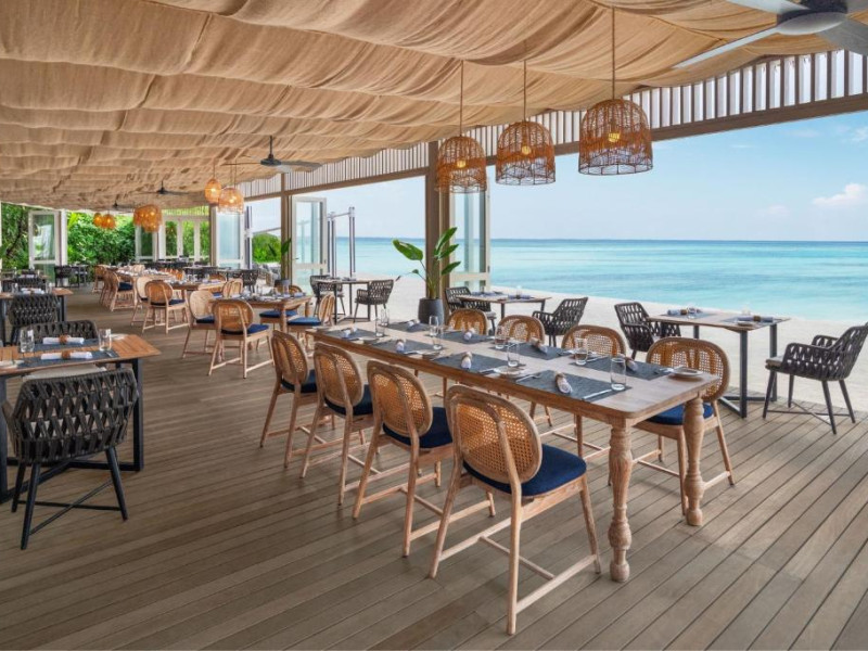 Există șase restaurante și baruri in stațiune. Tabemasu este unul dintre restaurantele care oferă un teppanyaki impreună cu meniuri omakase. De la mancăruri internationale la mancăruri locale, Turquoise oferă o terasă pe plajă, cu o varietate de opțiuni alimentare din care să alegeți.