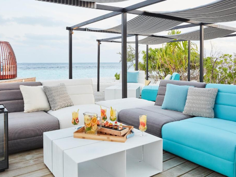 Opțiunile de luat masa includ REEF, care servește o selecție de delicii asiatice, SURF care servește fructe de mare la grătar și Pizza Kaage, unde oaspeții pot savura mese ușoare și pot lua pizza la pachet. Iru Bar este un bar pe plajă, in timp ce cocktailuri, băuturi și gustări pot fi savurate la Thari Bar in timp ce soarele strălucește și mai departe la barul de la piscină.